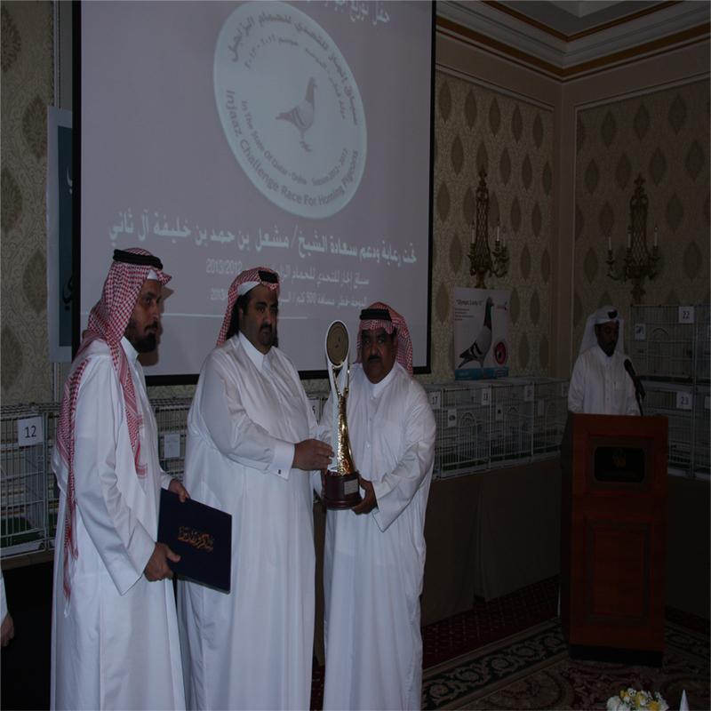 السلام عليكم ورحمة الله وبركاته اخواني الكرام تم ختام سباق انجاز للتحدي للحمام الزاجل 2013 برعاية سعادة الشيخ/ مشعل بن حمد بن خليفة ال ثاني وحضر التكريم سعادته وكبار من الشخصيات وهواه متنوعون من داخل قطر وخارجها وحشد من الاعلاميين للجرائد والقنوات وقام بتكريم الفائزين سعادة الشيخ/ مشعل بن حمد بن خليفة ال ثاني وكانت نتيجة السباق كالاتي : المركز الاول : السيد/ خالد نبيل العمادي حصل على جائزة وقدرها 20,000 الف ريال قطري + كاس + شهادة تقدير المركز الثاني : السيد/ علي مبارك المهندي حصل على جائزة وقدرها 10,000 الاف ريال قطري + كاس + شهادة تقدير المركز الثالث : السيد/ خالد نبيل العمادي حصل على جائزة وقدرها 8,000 الف ريال قطري + كاس + شهادة تقدير وهذه النتيجة للحاصلين على المراكز الثلاث الاوائل فقط اما بالنسبة للفائزين بالمراكز الاخرى فكانت متنوعة بعدها .. كان المزاد العلني الكبير للشركة العالمية الهولندية ايجركامب التي قامت باحضار عدد ( 30 ) طائرا من الحمام الزاجل من خطوط متنوعة للحمام التي تمتلكها الشركة وشهد المزاد تنافس قويا بين الهواه لامتلاك افضل الحمام المعروض للشركة العالمية ايجركامب وعليه .. تشكر الجمعية القطرية لهواه الحمام الزاجل سعادة الشيخ/ مشعل بن حمد بن خليفة ال ثاني على هذه المبادرة الرائعة التي من شانها رفع مستوى الهواية الان نترككم مع مقتطفات من حفل التكريم وللمزاد : ![]() سعادة الشيخ/ مشعل بن حمد بن خليفه آل ثاني الراعي الرسمي لسباق إنجاز للتحدي للحمام الزاجل 2013 مع سعادة الشيخ/ محمد بن أحمد آل ثاني رئيس مجلس إدارة الجمعية القطرية لهواة الحمام الزاجل مع السيد/ عبدالرزاق الكواري مدير إدارة المراكز الشبابية بوزارة الثقافة والفنون والتراث ![]() سعادة الشيخ/ محمد بن أحمد آل ثاني رئيس مجلس إدارة الجمعية القطرية لهواة الحمام الزاجل مع السيد/ عبدالرزاق الكواري مدير إدارة المراكز الشبابية بوزارة الثقافة والفنون والتراث ![]() جوائز للمركز الأول والثاني والثالث ![]() سعادة الشيخ/ مشعل بن حمد بن خليفه آل ثاني يكرم صاحب المركز الاول: السيد/ خالد نبيل العمادي ![]() سعادة الشيخ/ مشعل بن حمد بن خليفه آل ثاني مع سعادة الشيخ/ محمد بن أحمد آل ثاني رئيس مجلس إدارة الجمعية القطرية لهواة الحمام الزاجل يكرم صاحب المركز الثاني: السيد/ علي مبارك المهندي ![]() سعادة الشيخ/ مشعل بن حمد بن خليفه آل ثاني مع سعادة الشيخ/ محمد بن أحمد آل ثاني رئيس مجلس إدارة الجمعية القطرية لهواة الحمام الزاجل يكرم صاحب المركز الثالث: السيد/ خالد نبيل العمادي ![]() ![]() ![]() ![]() السيد/ هينـــــــــــــــك مدير الشركة العالمية الهولندية أيجركمب ![]() ![]() صاحب المركز الأول والثالث السيد/ خالد نبيل العمادي الجمعية القطرية لهواة الحمام الزاجل